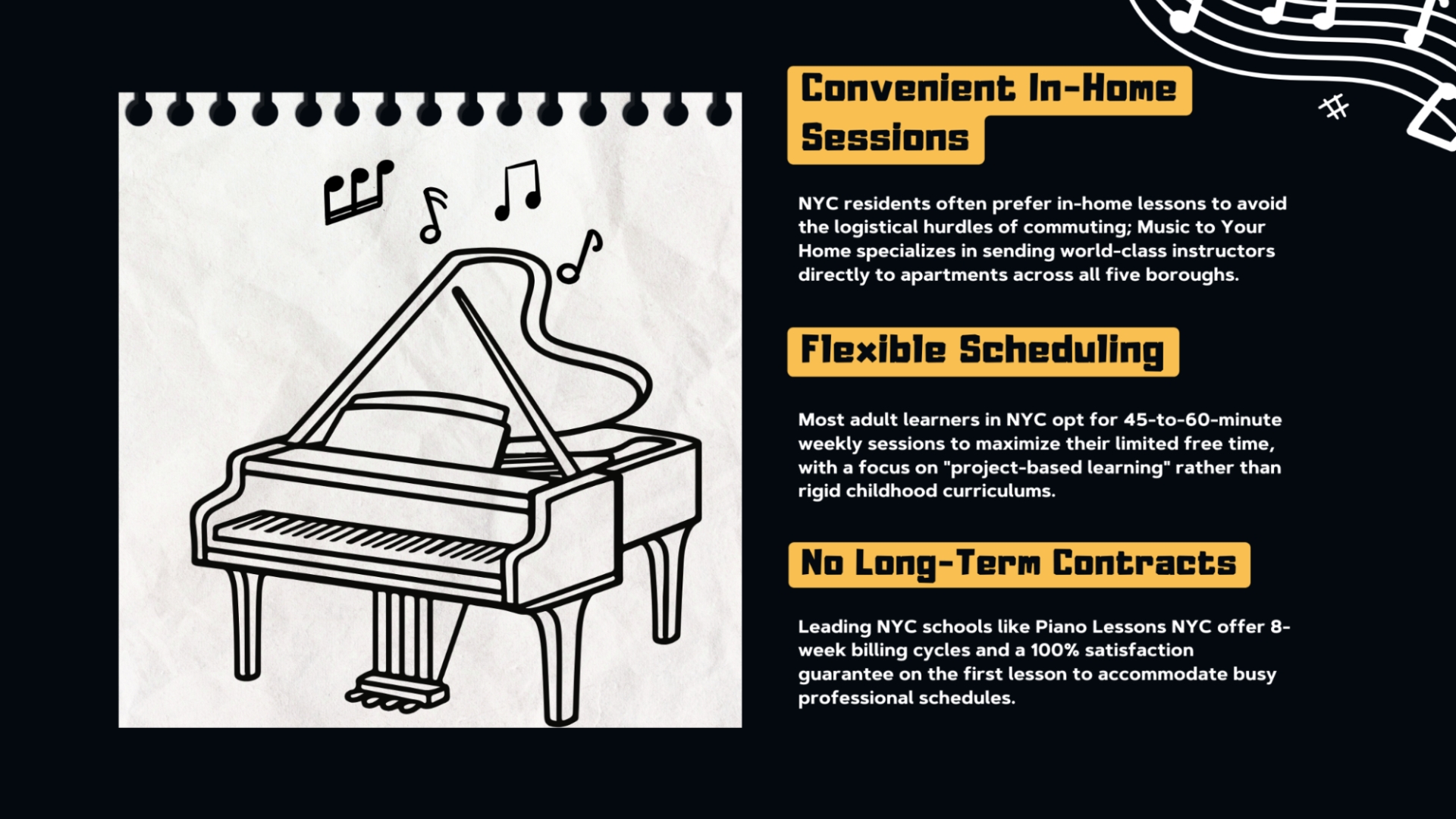 NYC is full of noise, rush, and pressure. Piano can become the opposite of that; a daily practice of focus, calm, and growth. Start small, stay consistent, and let the city’s music culture fuel you as you go.